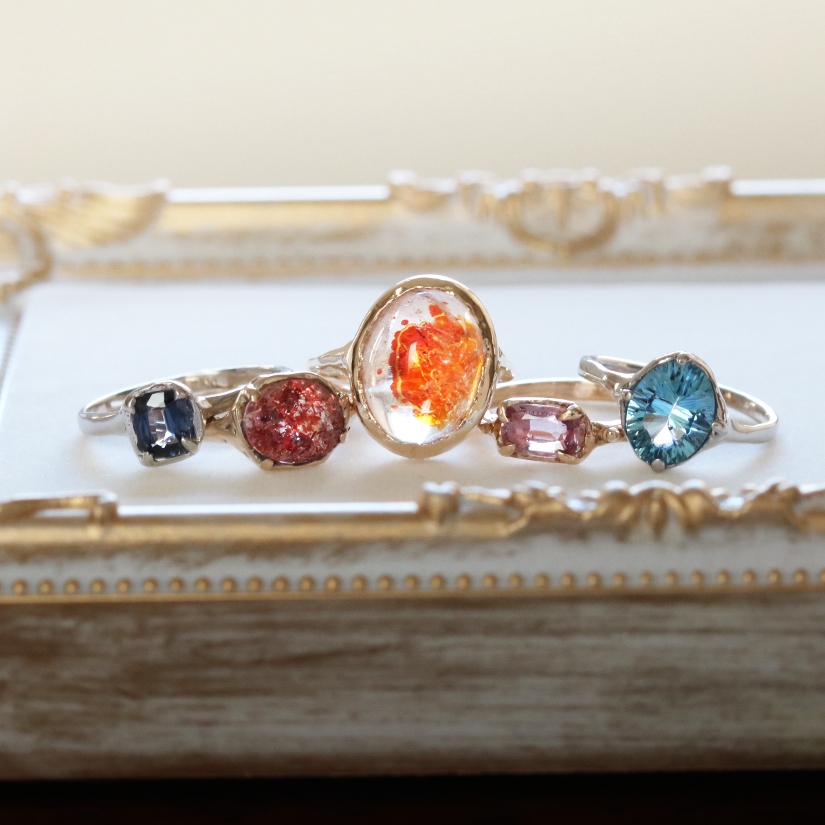 細身の地金に一粒の石を添えて 天然石の色味もしっかり楽しめる、重ね付けにもぴったりなコレクションです